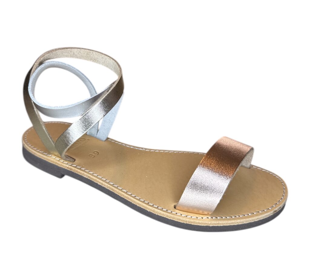 Τριπλός μεταλλικός χρωματισμός με μπρονζέ φάσα μπροστά και χρυσό και ασημί λουράκι στον αστράγαλο.